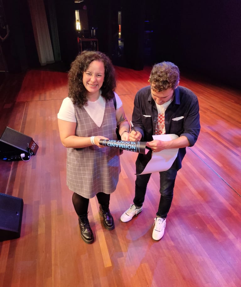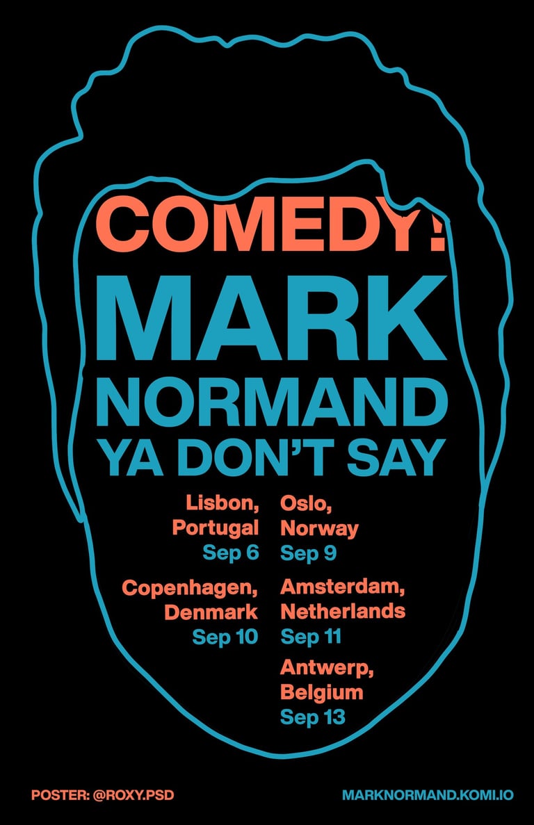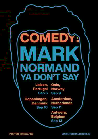 This was the winning poster for Mark Normand's 'Ya Don't Say' competition; it captures his quick wit and no-nonsense style using a minimalist, head-shaped outline and bold, contrasting colours. I got to meet him after the show; he signed my poster and told me I have great eyebrows.